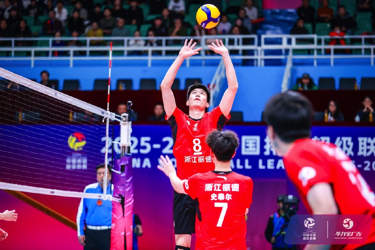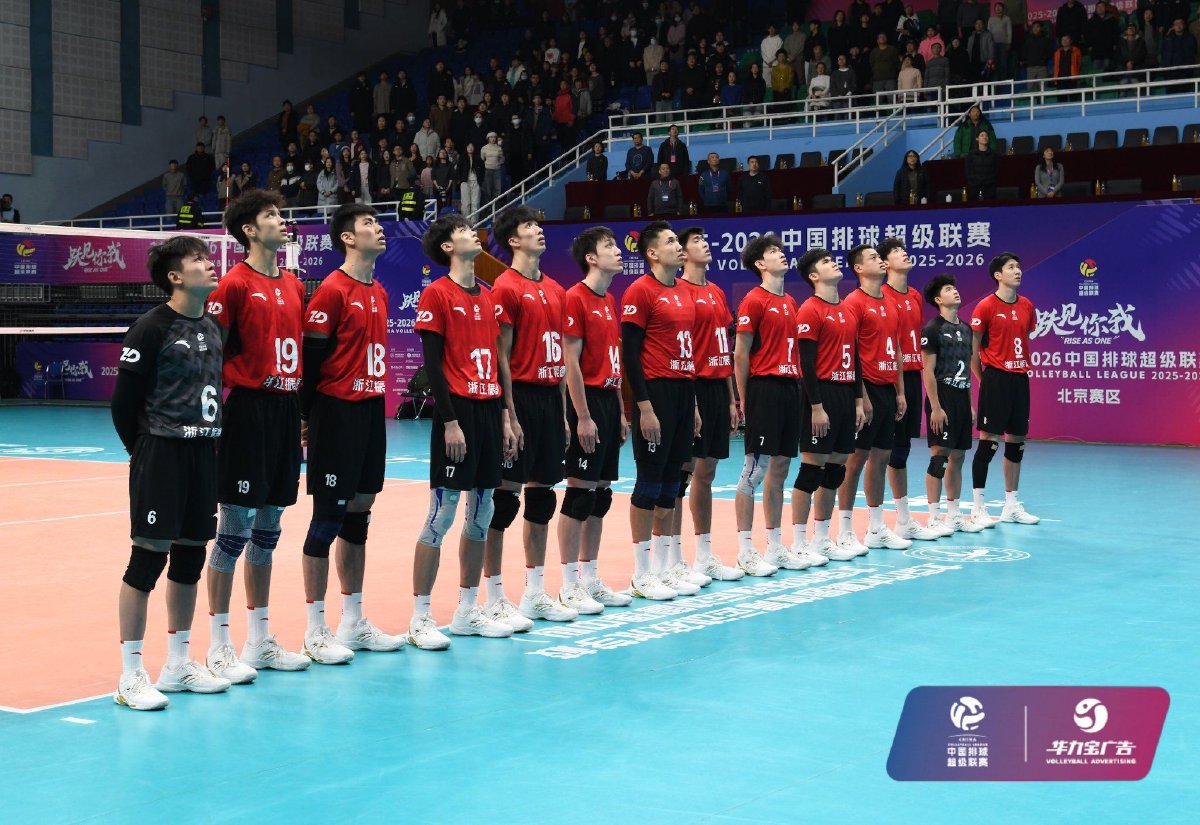 2025年12月21日,2025-2026中国男子排球超级联赛常规赛A级第三轮第12场比赛在北京市北京越野光彩体育馆结束。经过三局激战,北京北汽男排主场3比0战胜浙江振德男排,三局比分为25比23、25比10、25比22。